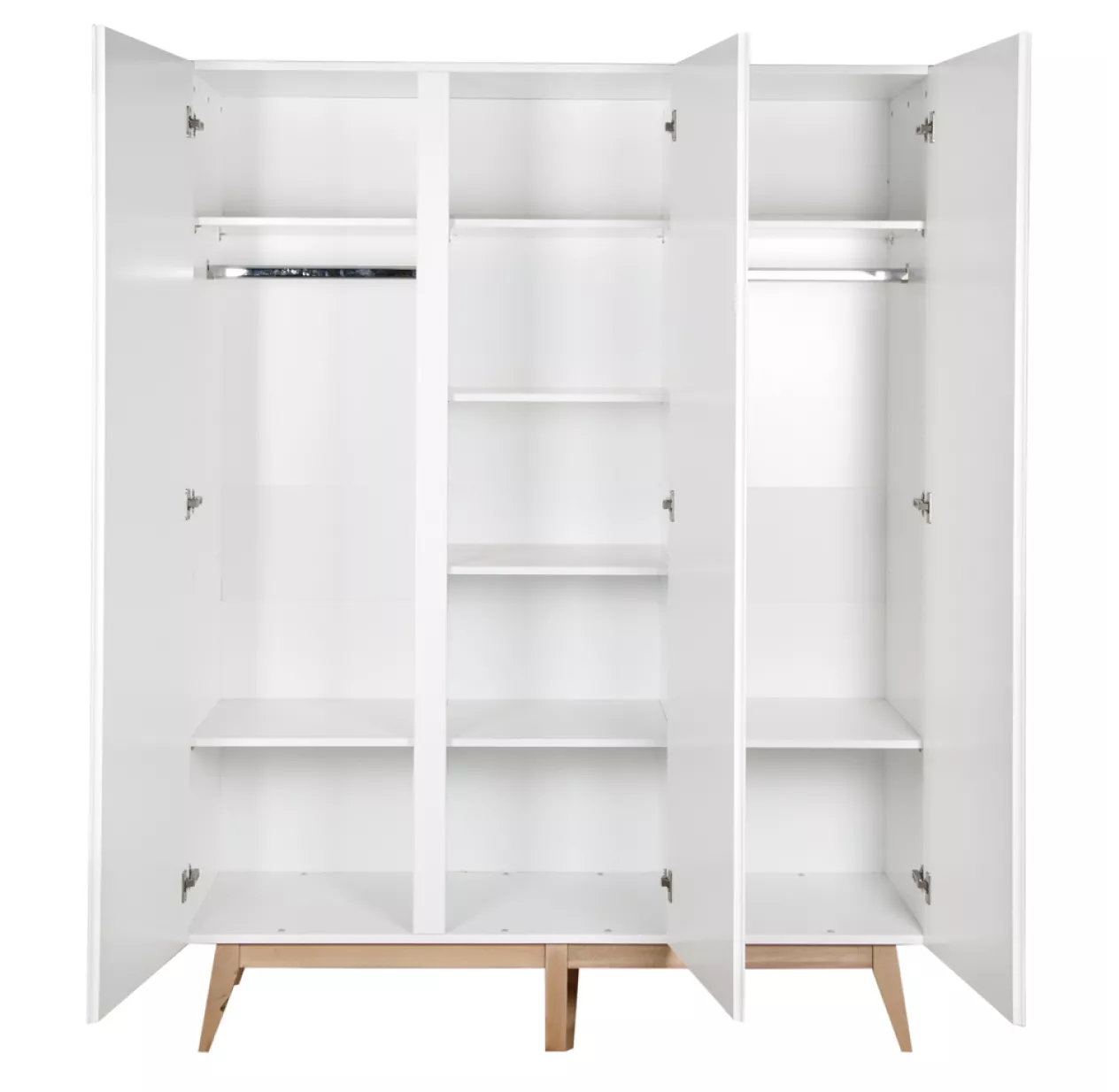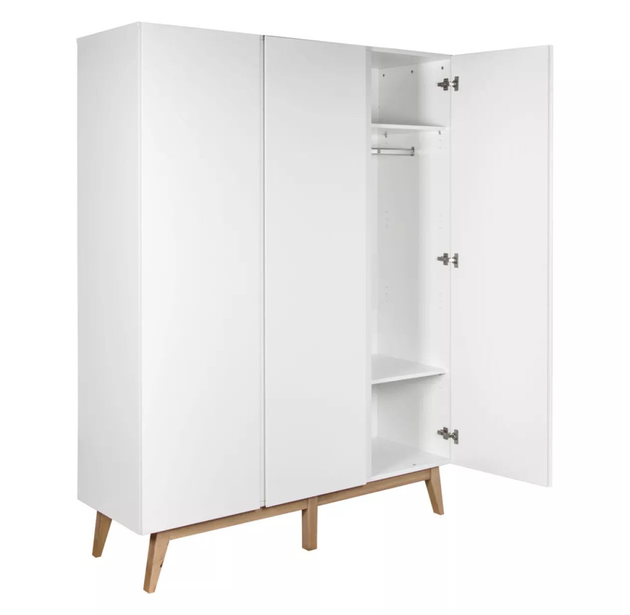 L’armoire trois portes Trendy offrira une ambiance un brin rĂ©tro dans la chambre de votre bĂ©bĂ© ou de votre enfant. Un design Ă©purĂ© et intemporel pour se marier idĂ©alement Ă toutes les dĂ©corations. Grâce Ă l’aspect sobre et efficace de l’armoire Trendy, vous pourrez jouer avec des dĂ©tails colorĂ©s pour une chambre Ă la dĂ©coration originale. De l’espace fonctionnel Ă l’intĂ©rieur pour parfaitement ranger les vĂŞtements de votre enfant. L’armoire Trendy de Quax s’accorde Ă merveille avec le mobilier de la mĂŞme collection pour crĂ©er une chambre de bĂ©bĂ© ou d’enfant complète.