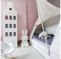 Amsterdam est une armoire en forme de maison hollandaise. Toute en longueur, avec un faible encombrement au sol, elle fait office de bibliothèque, de penderie ou de maison de poupĂ©e. AlignĂ©es cĂ´te Ă cĂ´te, ces maisons colorĂ©es peuvent aussi former une cloison de sĂ©paration pour la chambre de vos enfants. Nous, les Enfants du Design, on a craquĂ© dessus la première fois qu’on l’a vue. C’est un très bel objet qui a en plus le mĂ©rite d’ĂŞtre pratique, ludique, poĂ©tique… Si on avait demandĂ© Ă un enfant de dessiner une armoire pour sa chambre, peut-ĂŞtre mĂŞme qu’il aurait dessinĂ© celle-lĂ .