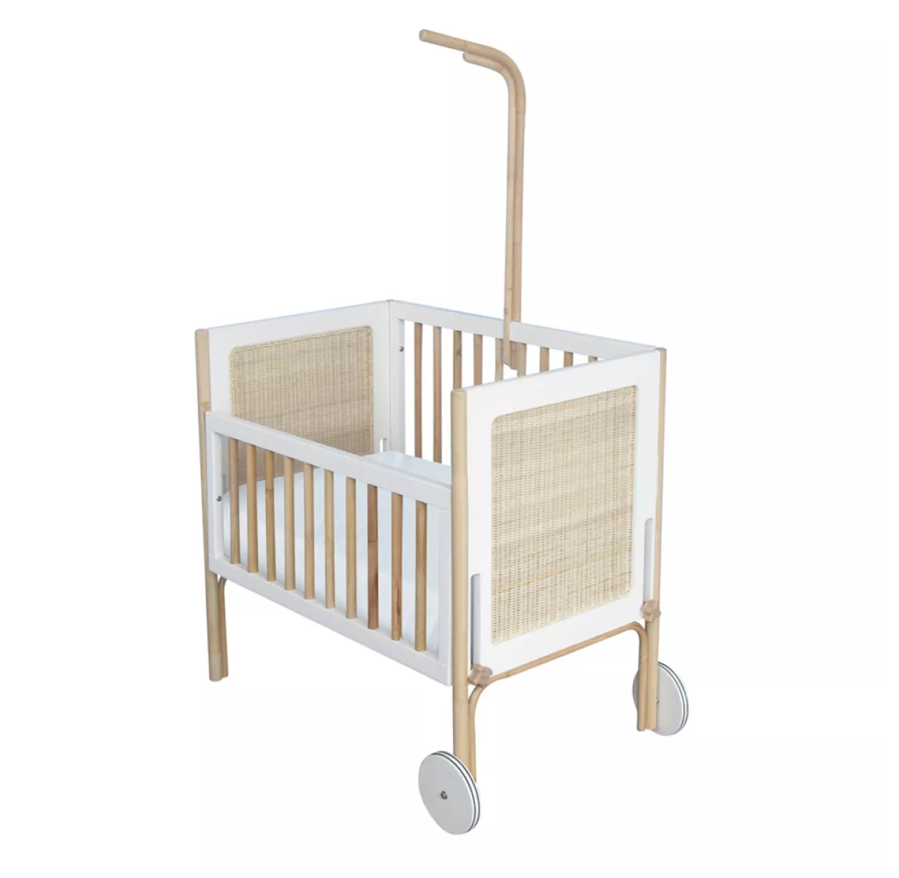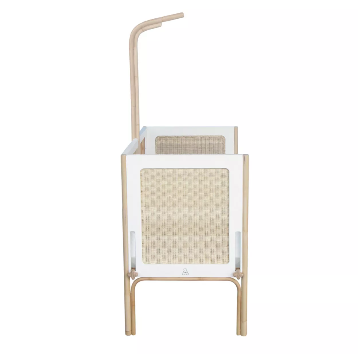 Coup de coeur pour cet adorable berceau cododo en rotin et cèdre. Livré avec sa flèche, le berceau cododo Océania de Théo s’ajuste en hauteur au lit des parents de 65 cm de haut minimum. Son couchage de 50 x 83 cm accueille votre bébé de la naissance à 9 mois environ. On craque pour le style délicatement rétro de ce berceau cododo en bois et rotin tressé. En associant subtilement bois et rotin dans ses collections de mobilier enfant, la marque Théo propose un style de chambre à la fois contemporain et rétro qui apporte un vent de fraîcheur dans l’univers de la déco enfant.