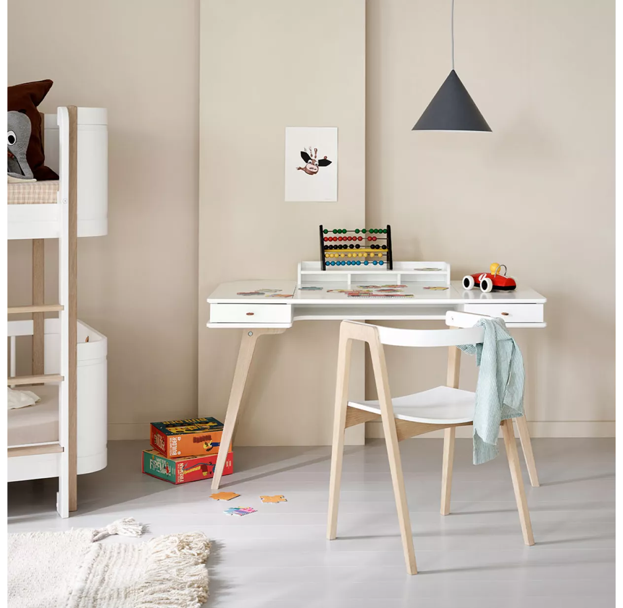 | Matériau(x) | Bouleau massif, peinture non toxique, pieds en chêne |
