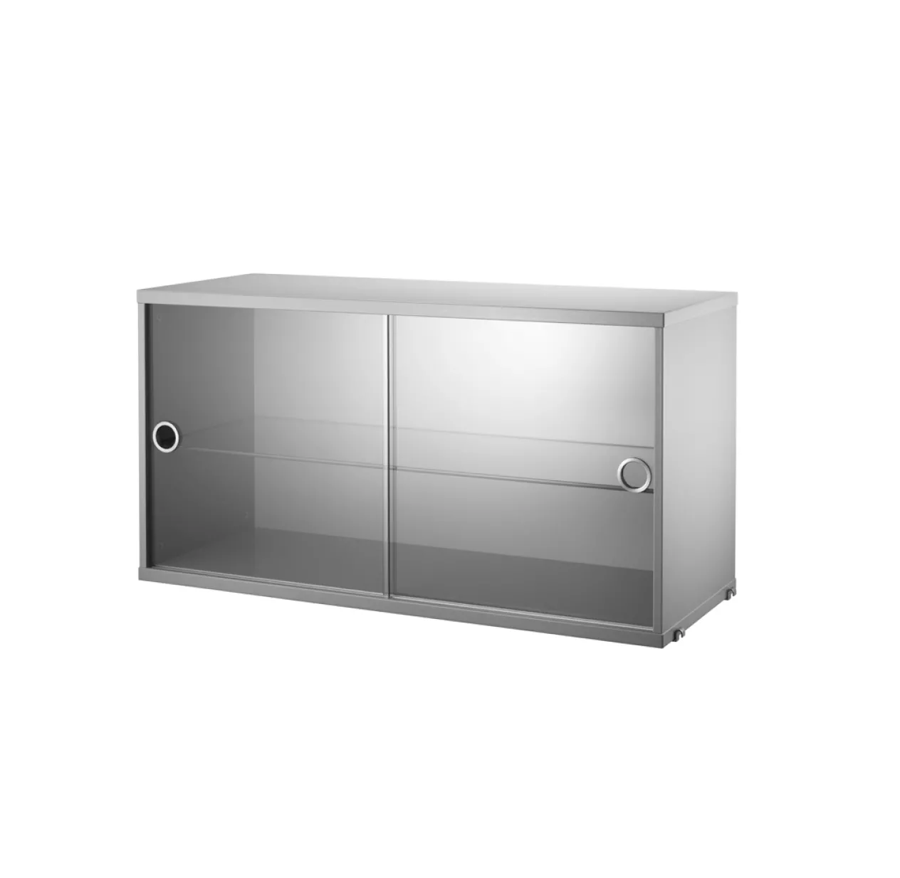 Ce caisson gris à portes vitrées coulissantes s’adapte aux portants muraux et portants au sol String. Vous pouvez créer votre propre composition murale grâce à ce caisson et créer un maximum de rangements.