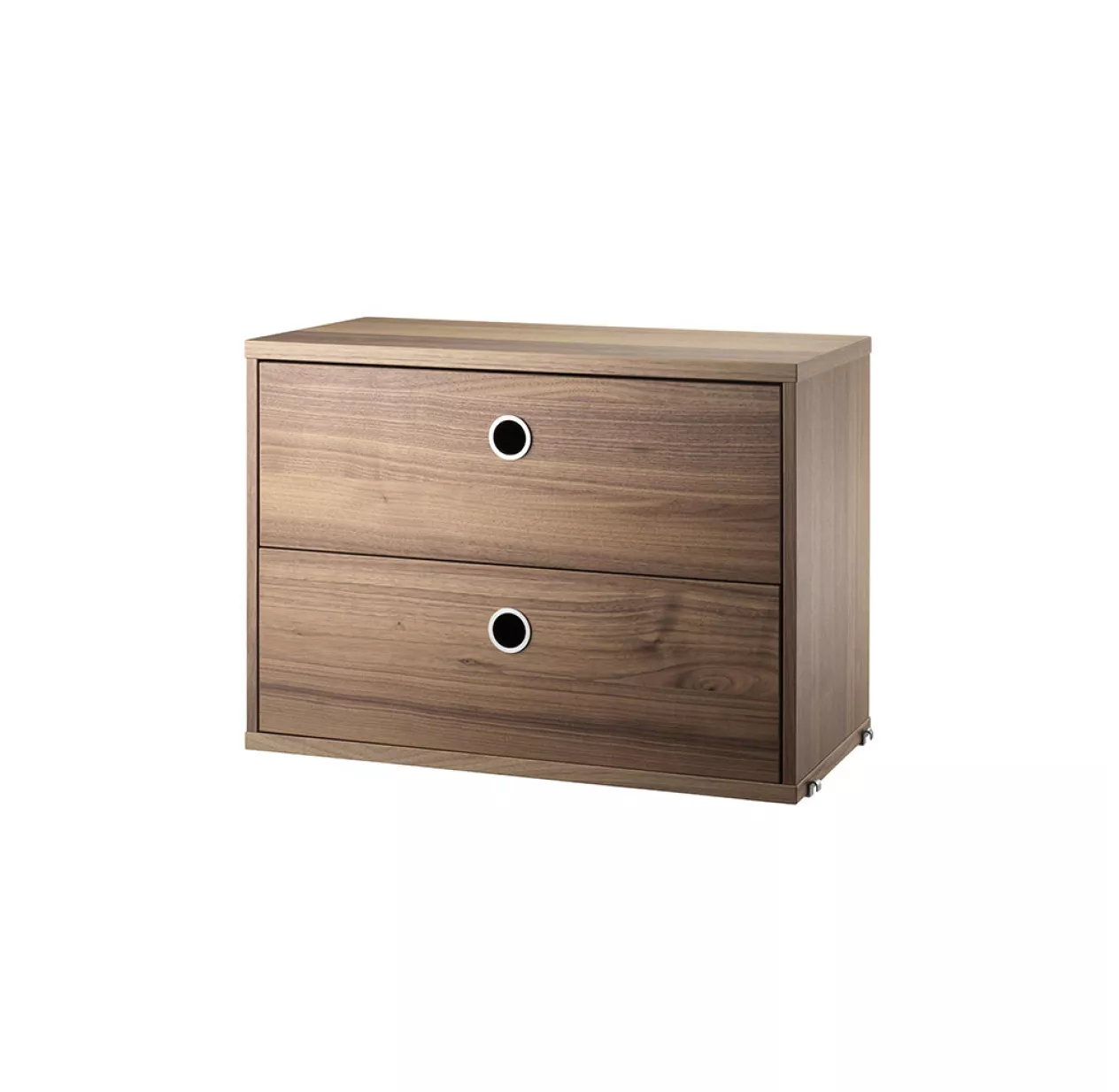 STRING est un système modulable d’étagères murales imaginé par Nisse Strinning en 1949. Ce caisson frêne à tiroirs de 58 cm de large s’adapte aux portants muraux et portants au sol String. Vous pouvez créer votre propre composition murale grâce à ce caisson et créer un maximum de rangements.