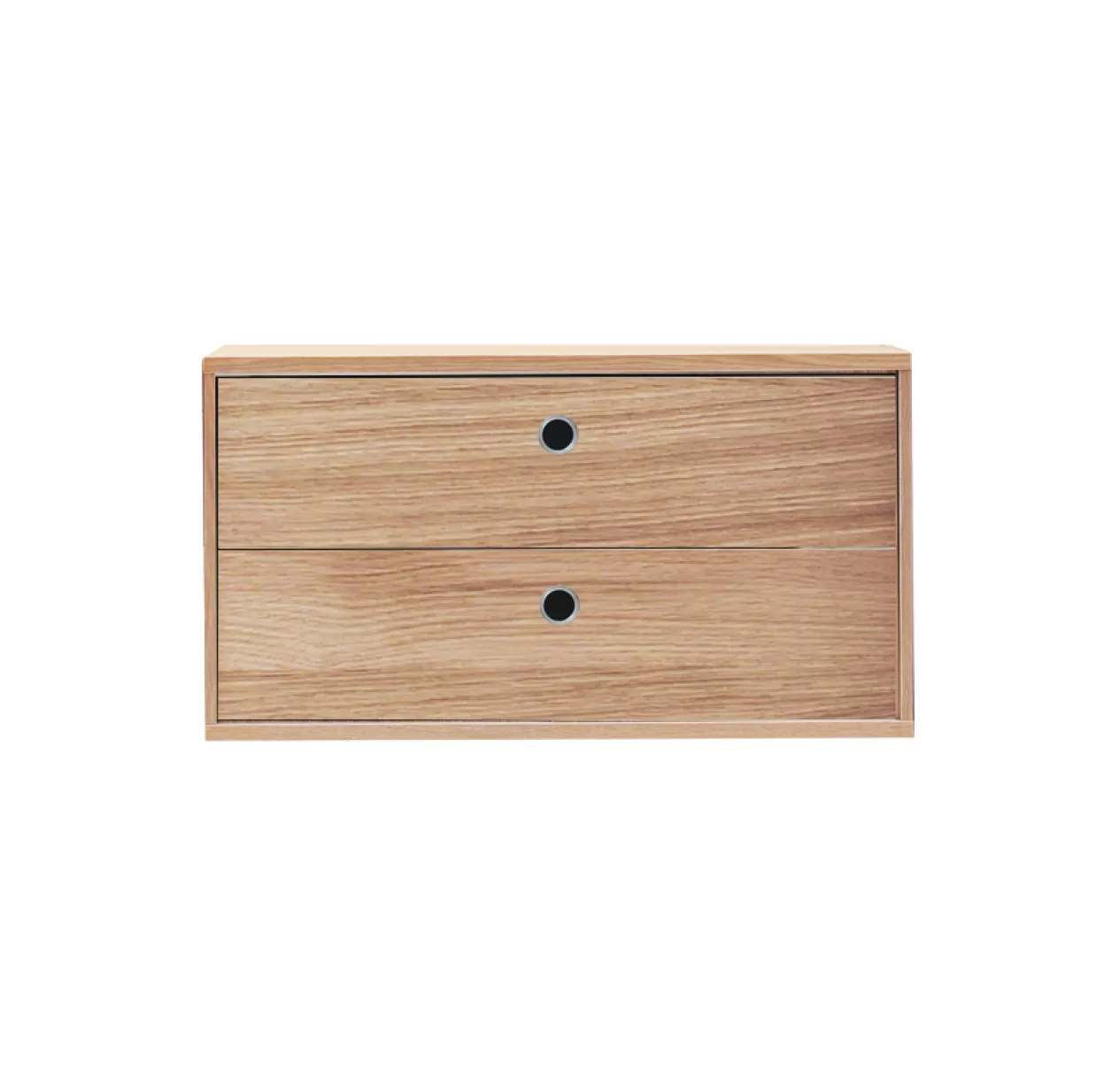 Ce caisson en chêne à tiroirs s’adapte aux portants muraux et portants au sol String. Vous pouvez créer votre propre composition murale grâce à ce caisson et créer un maximum de rangements.