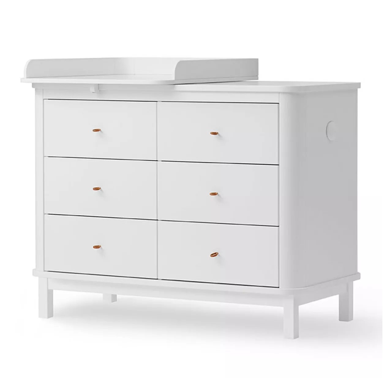 Vous allez adorer la commode à langer blanche de la collection Wood. Elle possède 6 tiroirs et un petit plan à langer amovible. Conçue artisanalement et dans la tradition du design scandinave, cette commode aux lignes arrondies s’associera parfaitement à une décoration moderne. Les poignées sont en cuir et sont fabriquées à la main. Elle dispose également de petits portants ronds sur les côtés, extensibles qui se tirent facilement, pour suspendre des vêtements. Cette commode à langer est idéale pour une chambre de bébé.