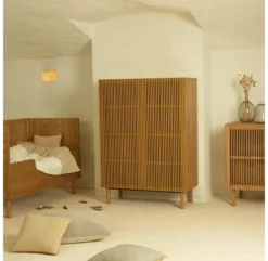 Inspirée par la nature, la collection de mobilier Flow de Quax offre un design minimaliste, des tons doux apaisants et des matériaux naturels. La chambre bébé et la chambre enfant se transforment en une oasis de paix, un espace de respiration qui invite à la détente et à apprécier une forme de sobriété.