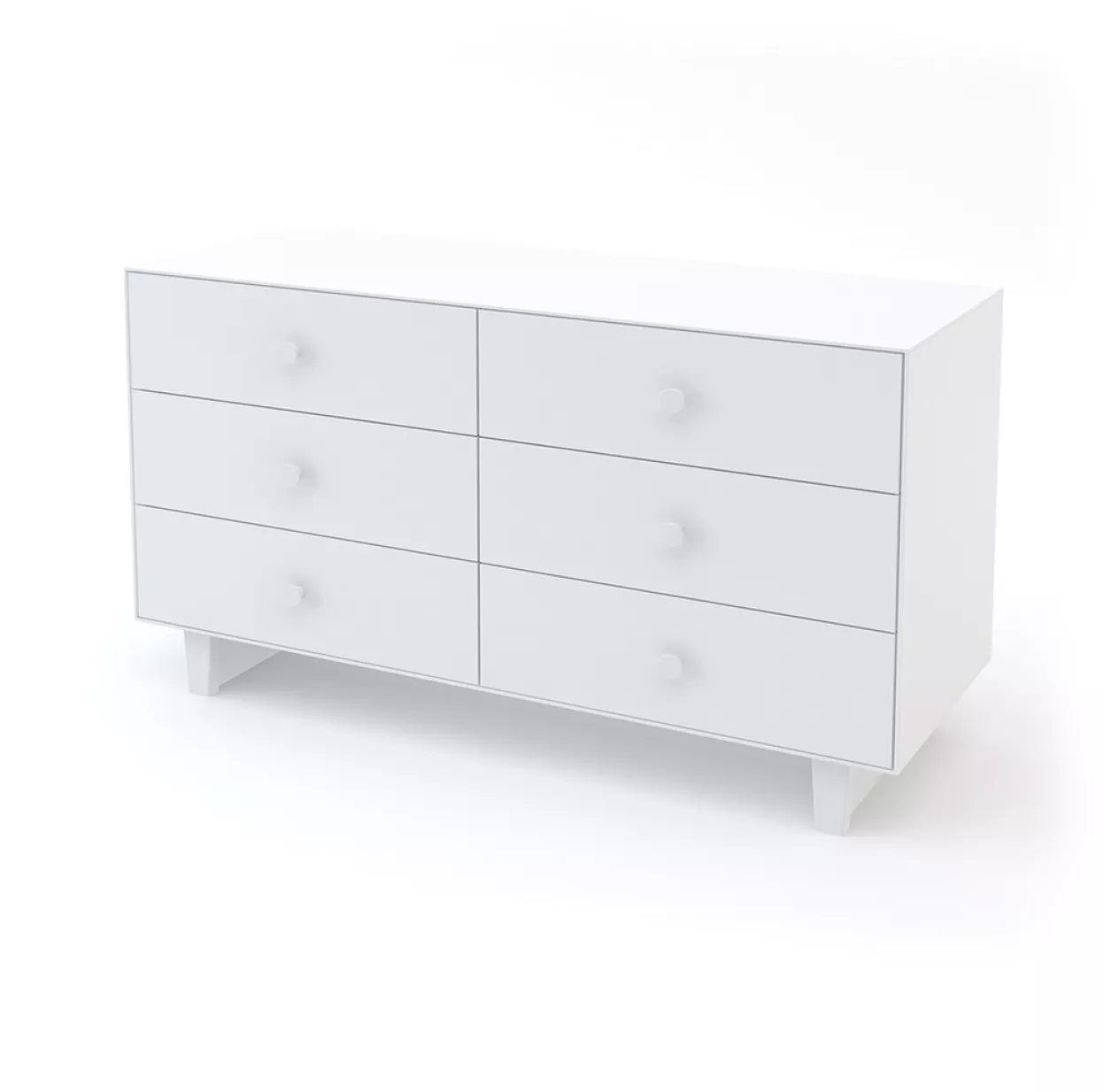 La commode Merlin est dotée d’un dispositif anti-basculement, les tiroirs ont une capacité de 22 kg et une fermeture amortie, les glissières des tiroirs sont à roulement et dissimulées.
