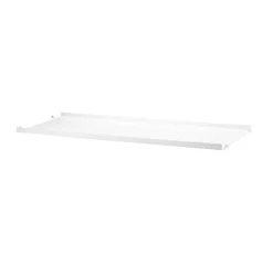 Grâce à cette étagère blanche en métal à petits rebords, vous pouvez créer votre propre composition murale. Elle s’adapte aux portants muraux et portants au sol String de 30 cm de profondeur.