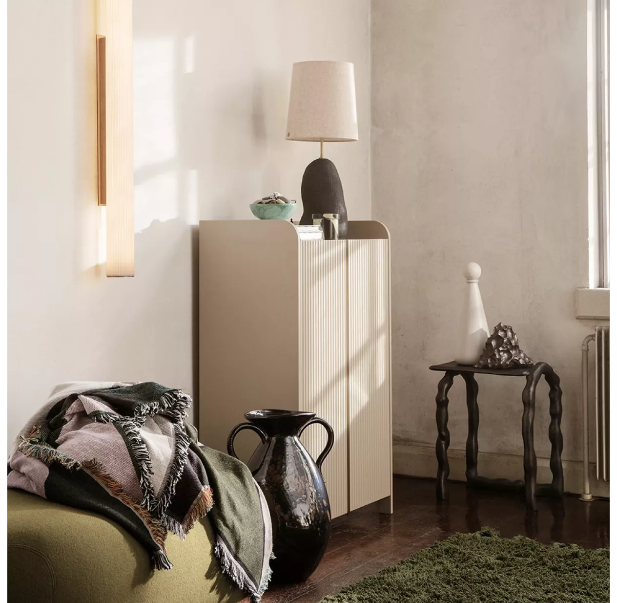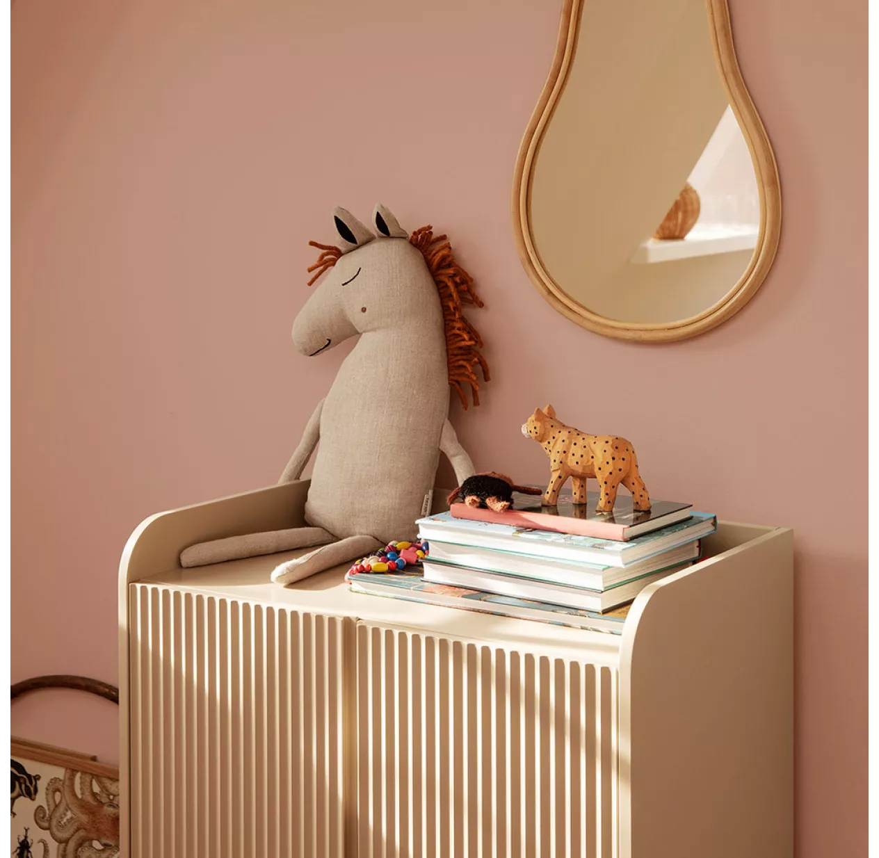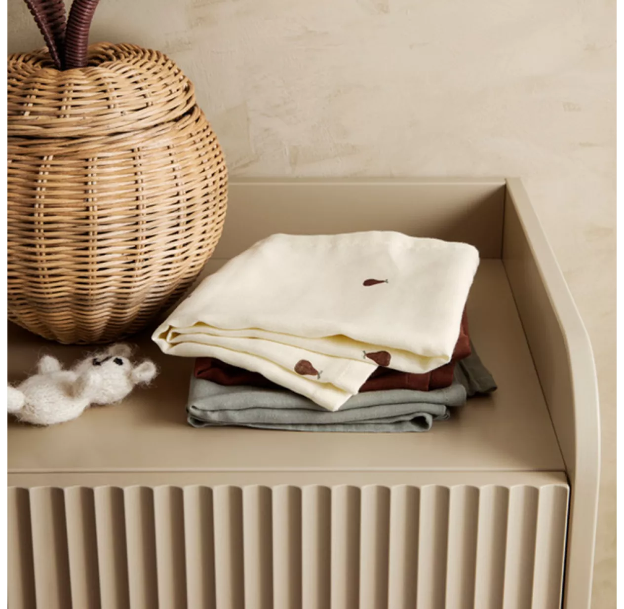 Coup de coeur pour la toute nouvelle collection de mobilier enfant Sill de Ferm Living ! Ses portes striées texturées, son coloris cachemire subtile et doux, en font une pièce de mobilier durable et intemporelle. La commode Sill ne passera pas inaperçue dans la chambre des enfants ! On aime sa silhouette élancée et son faible encombrement. En effet, la commode Sill ne mesure que 70 cm de large et 40 cm de profondeur. Ses dimensions la rendent particulièrement adaptée aux petites chambres ou aux espaces exigus tels un couloir ou un hall d’entrée. La collection Sill de Ferm Living tient son nom du mot français « sillon » matérialisé par ces fameuses rainures, des lignes graphiques fortes qui donnent tout son style à la collection. Le plateau supérieur de la commode est bordé de rebords pour offrir un espace de stockage pratique qui apporte un supplément de style avec ses angles arrondis. La commode Sill de Ferm Living est fabriquée à partir de MDF certifié FSC™.