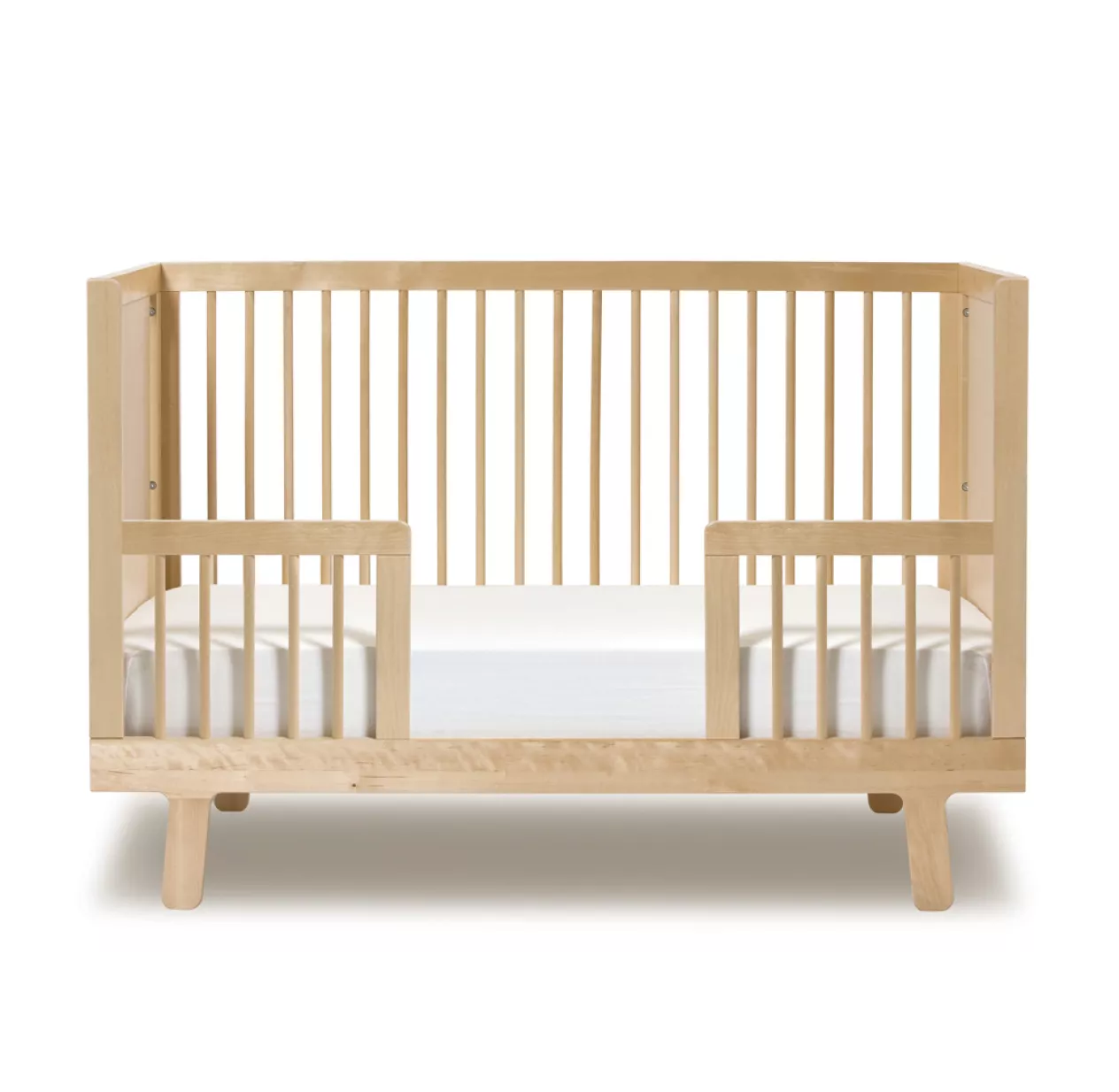 Si vous disposez déjà du lit bébé Sparrow, le kit de conversion vous permettra de le transformer en lit enfant jusqu’à 6 ans. Les deux petites barrières latérales permettent à l’enfant de développer son autonomie hautement revendiquée « tout seul » et d’éviter les chutes nocturnes. Le lit Sparrow prend une toute autre allure, on dirait un petit nichoir à enfant, il n’y a qu’à le recouvrir d’une couverture pour en faire une cabane ! La marque new-yorkaise Œuf spécialisée dans le mobilier enfant éco-design offre un mode de production exemplaire : le bois et le MDF proviennent de forêts éco gérées, les peintures sont éco-friendly, les vernis sont fabriqués à base d’eau et les meubles Oeuf ne contiennent aucun PCP, PBDE ou phtalates.