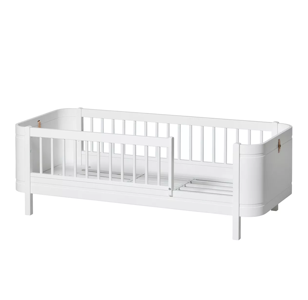 Le lit bébé évolutif 5 en 1 Mini+ Wood est également disponible en blanc et chêne.