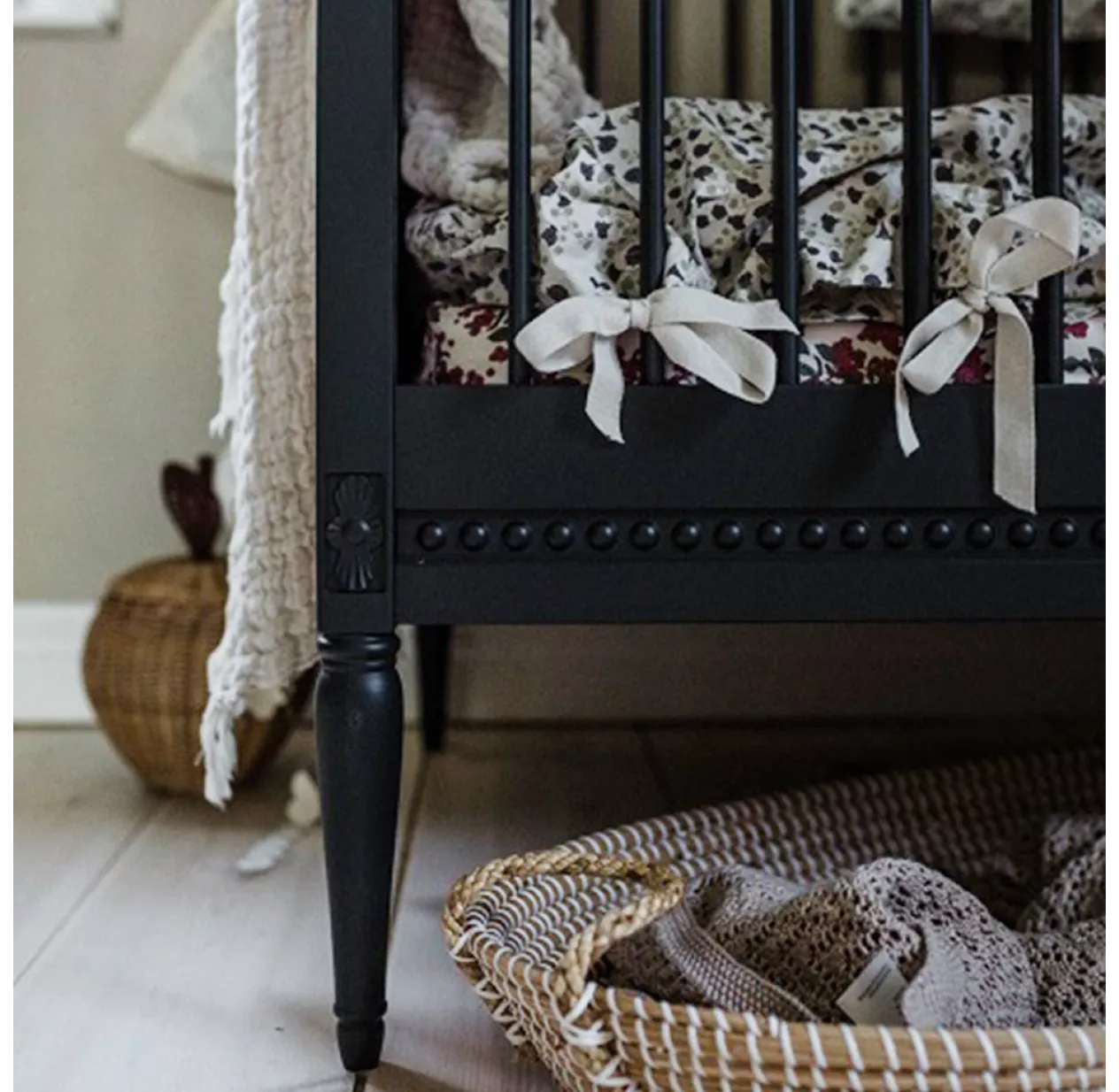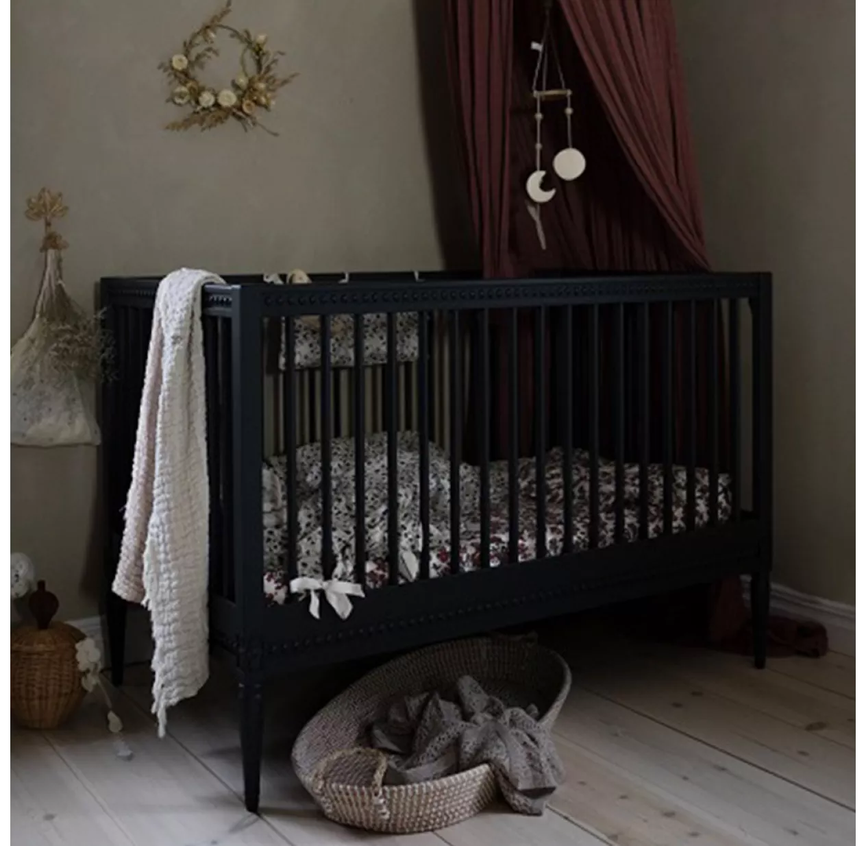 Le lit bébé Gustavienne au design harmonieux et élégant s’inspire du style gustavien. Une rose sauvage sculptée au-dessus de chaque pied et des perles gravées dans le bois sur les contours du lit bébé. La créatrice, Nathalie, a imaginé un lit bébé en bois massif au design raffiné pour la chambre de votre bébé. Fabriqué selon la tradition et le savoir-faire des menuisiers du XVIIème siècle, vous allez craquer pour le lit bébé Gustavienne dont le sommier possède deux hauteurs. Le matelas en mousse Certipur et certifié Oeko-Tex est inclus. Le lit bébé de la marque aura une seconde vie grâce au kit de conversion inclus qui permet de le transformer en petit canapé. Il s’associe à la commode 3 tiroirs, mais aussi à l’armoire et à la table à langer Gustavienne, pour constituer une chambre bébé complète.