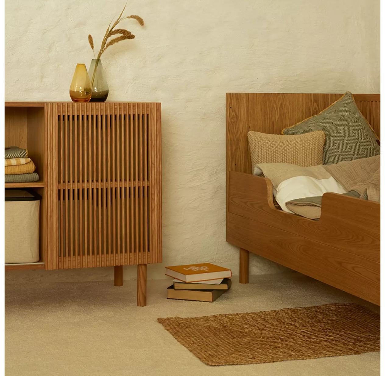 Inspirée par la nature, la collection de mobilier Hai No Ki de Quax offre un design minimaliste, des lignes sobres et des matériaux naturels. La chambre bébé et la chambre enfant se transforment en une oasis de paix, un espace de respiration qui invite à la détente et à apprécier une forme de sobriété.