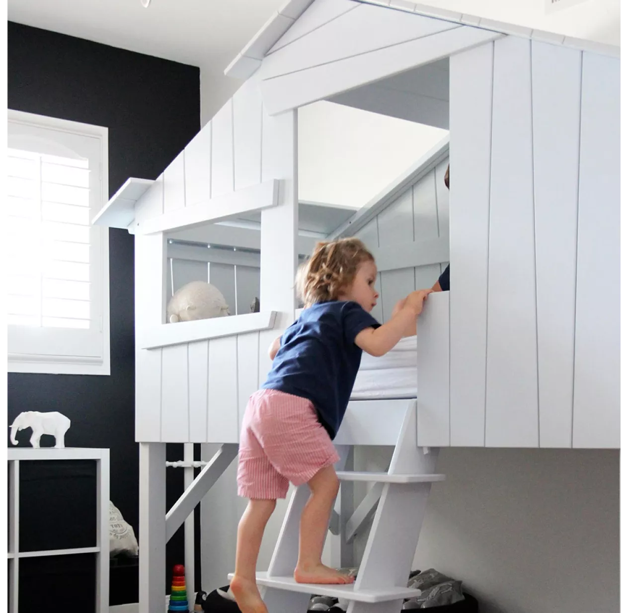 Quel enfant n’a jamais rêver de dormir dans une cabane ? Le mythique lit cabane de Mathy by Bols est perché à 80 cm de haut. Adapté à l’enfant dès 6 ans, il est équipé d’une échelle pour un accès facile. Son sommier performé en MDF mélaminé offre un couchage en 90 x 190 cm. Nous vous recommandons un matelas d’une hauteur maximum de 14 cm. Partant du principe que l’enfant passe énormément de temps dans sa chambre, la marque Mathy by Bols a eu à coeur de concevoir un mobilier qui participe à son évolution, lui permettant d’expérimenter, de jouer et d’apprendre dans une atmosphère où il se sentirait en sécurité. C’est dans cette perspective que le lit cabane Mathy by Bols a été imaginé. Il est évolutif, vous pourrez lui associer un toboggan latéral, une plate-forme avec toboggan ou encore un deuxième lit pour former un lit superposé.