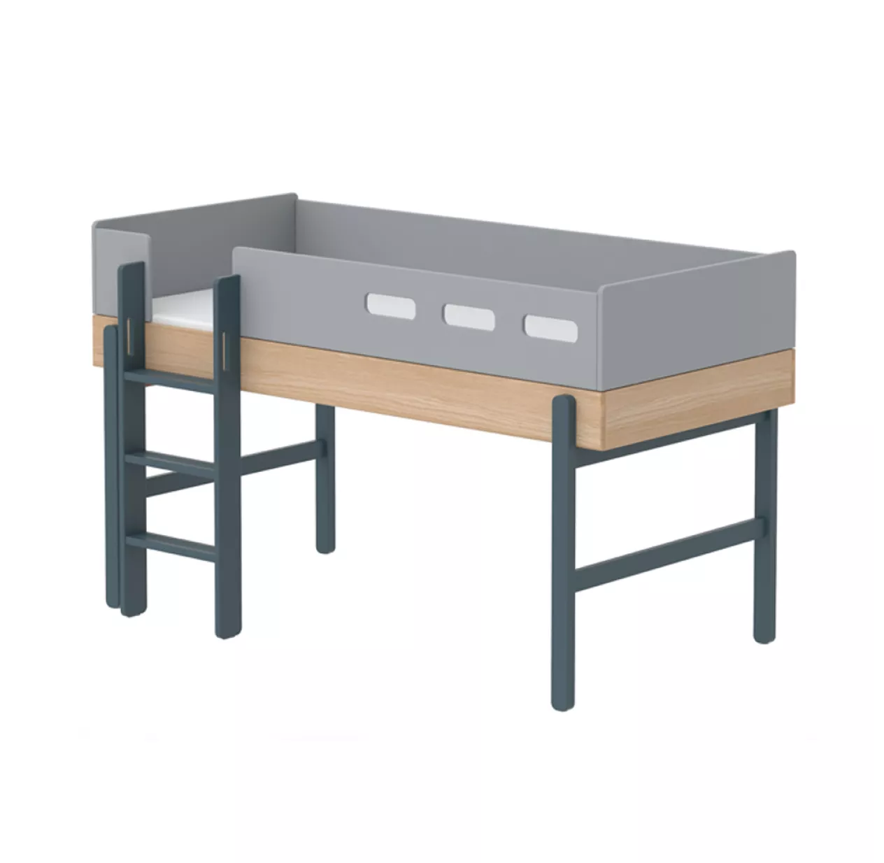 Les pieds couleur blueberry qui transforment le lit mi-hauteur de votre enfant en lit simple sont disponibles en option.