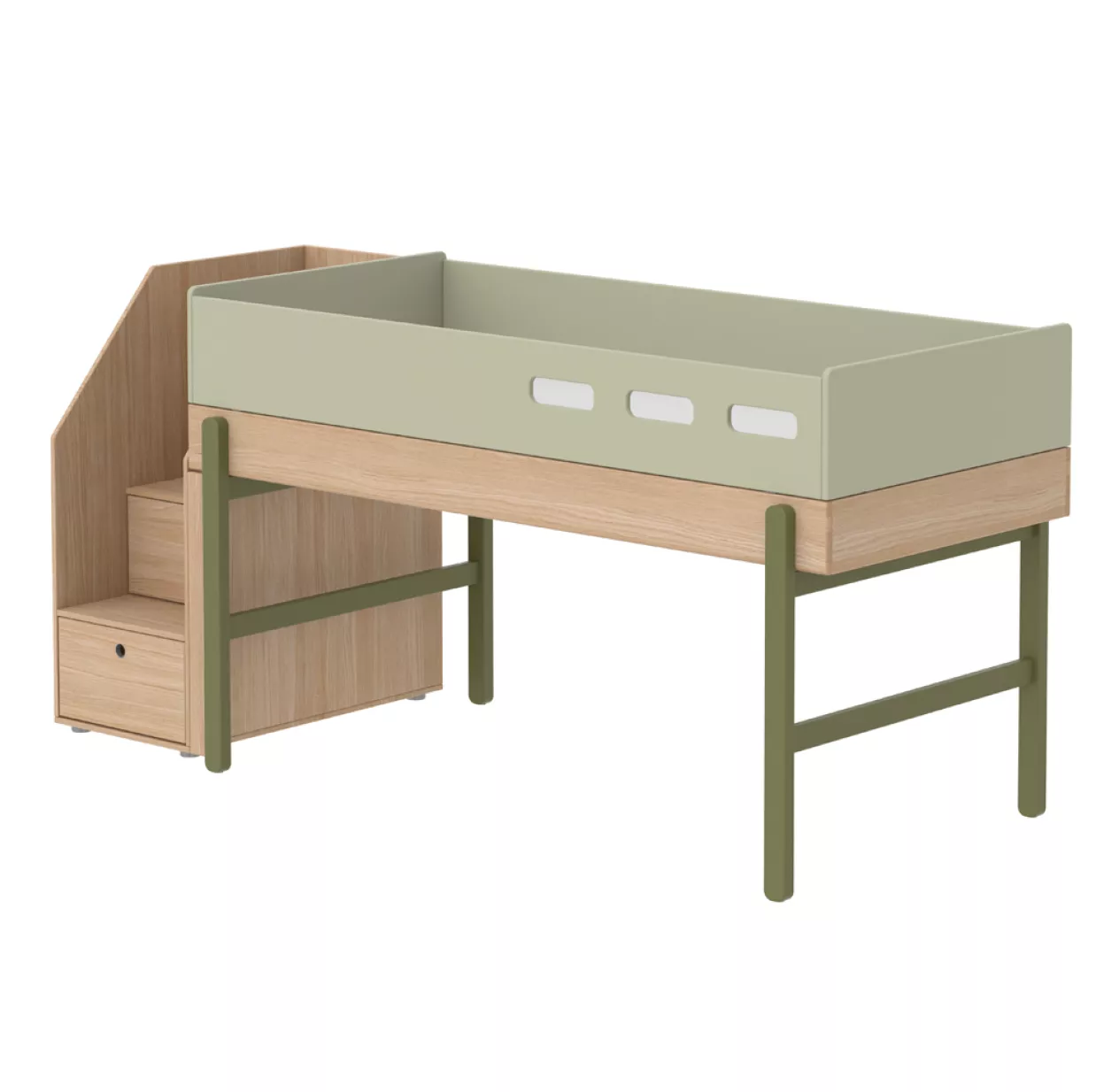 Les pieds couleur kiwi qui transforment le lit mi-hauteur de votre enfant en lit simple sont disponibles en option.