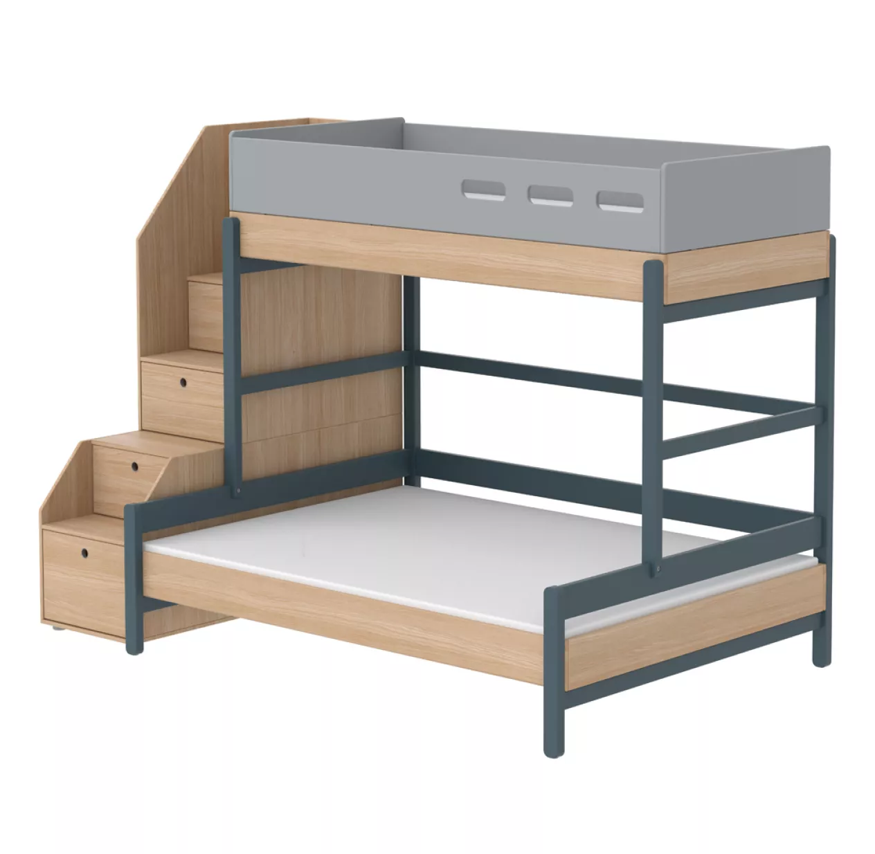 Lit Familial Superposé Escalier Popsicle – Chêne/Blueberry