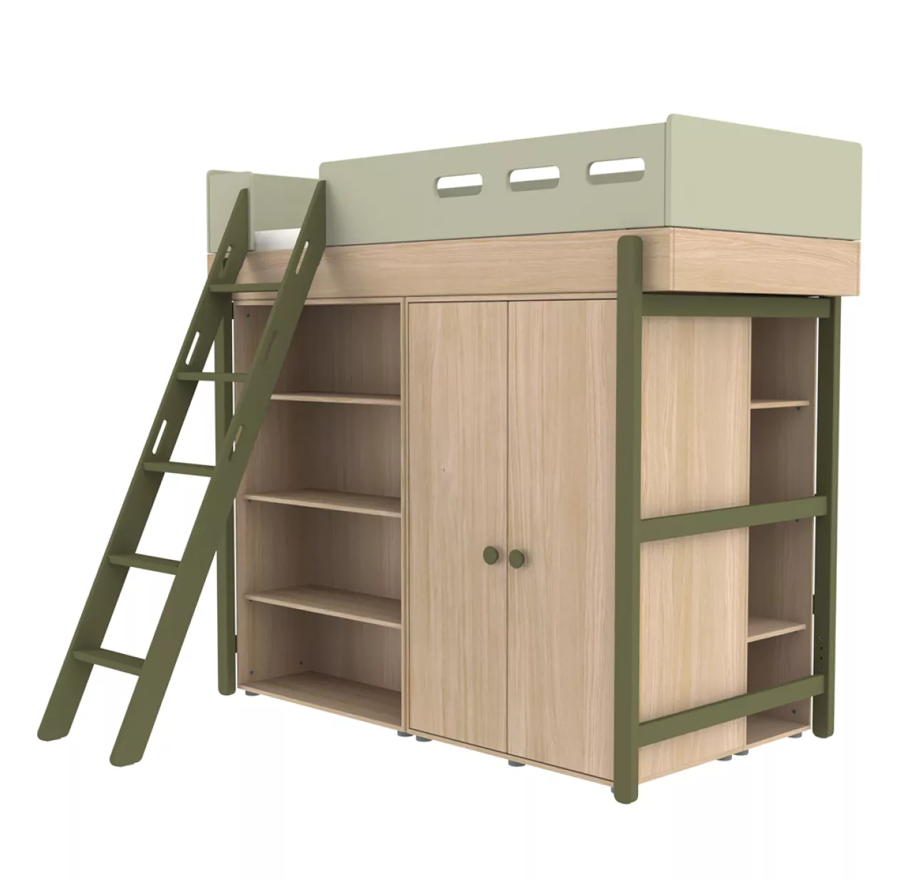 Les pieds couleur kiwi qui transforment le lit mezzanine de votre enfant en lit simple sont disponibles en option.