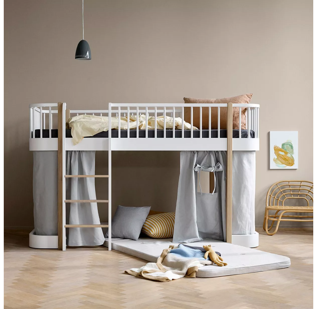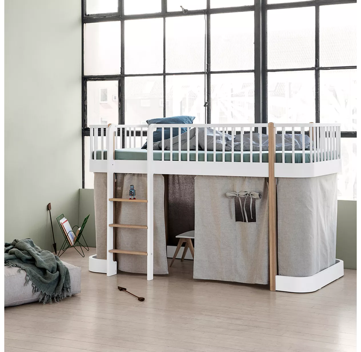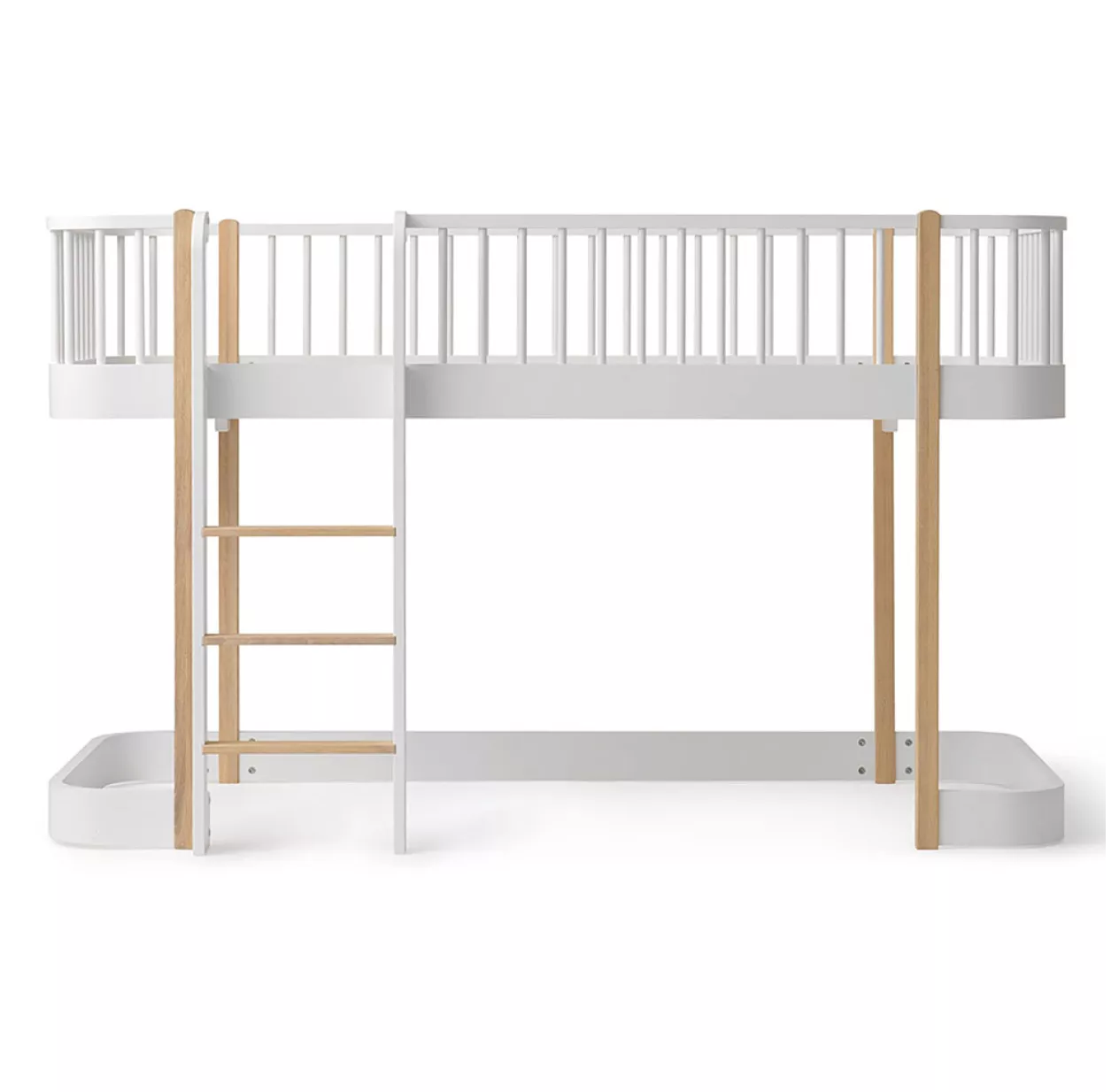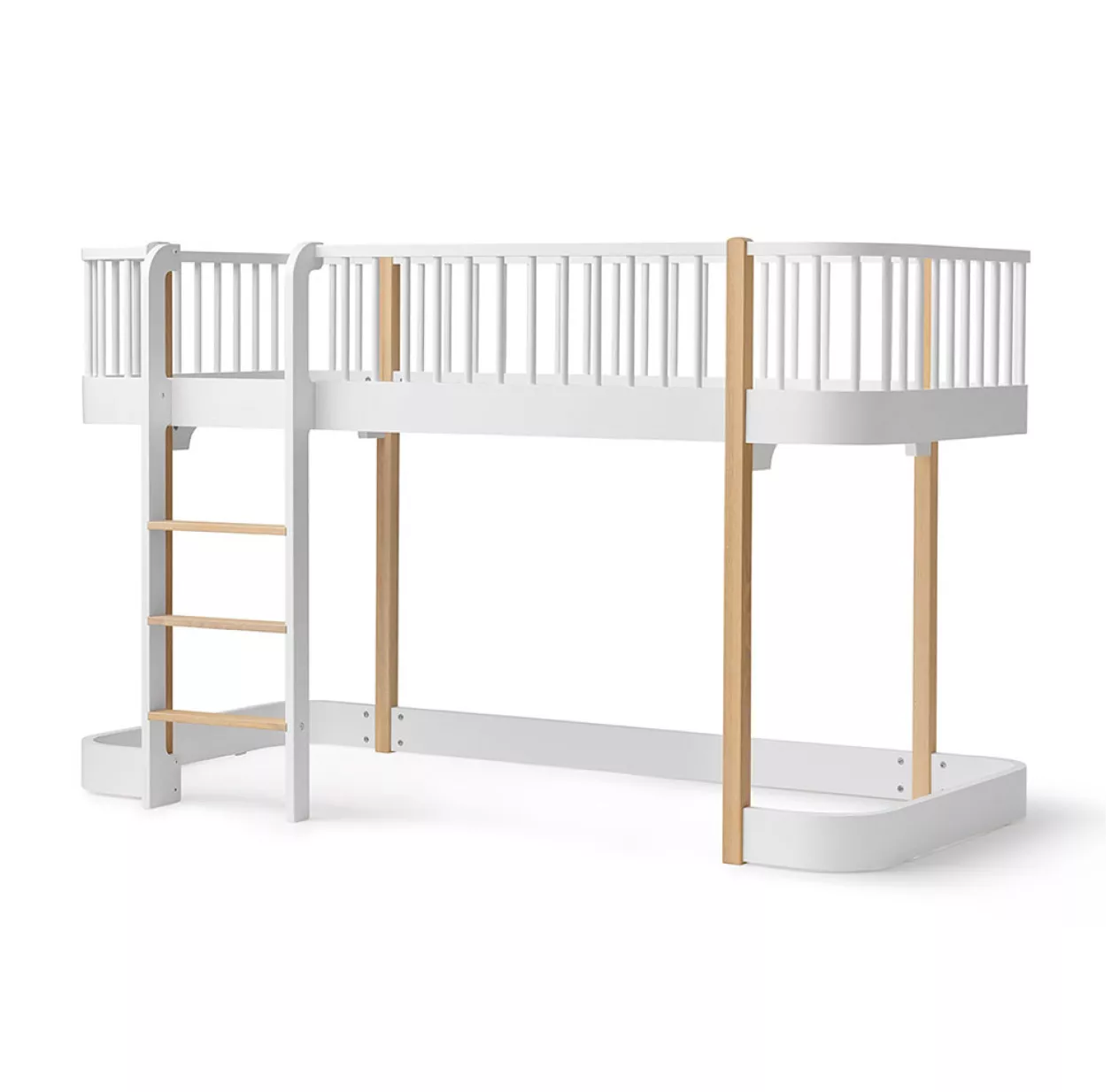 Lit Mezzanine Mi-haut Wood Avec échelle Face – Blanc/Chêne