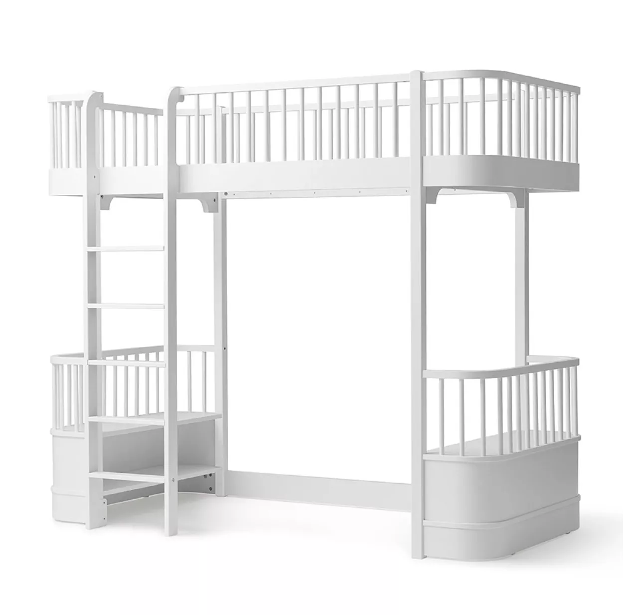 Le lit mezzanine Wood est également disponible en blanc et chêne.