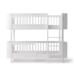 Le lit superposé Wood Mini+ d’Oliver Furniture associe 2 lits juniors. Il se distingue dans la catégorie des lits superposés par des dimensions ultra compactes. En effet, il est composé de 2 couchages en 68 x 162 cm (matelas vendus séparément) qui conviennent à l’enfant de 2 à 8 ans. La barrière amovible du lit inférieur permet d’accueillir un enfant dès 2 ans en toute sécurité. Les formes arrondies de la collection Wood dessinent un espace rassurant pour l’enfant, comme un cocon. Le lit superposé junior Wood Mini+ s’associe au kit de votre choix pour devenir un lit junior mezzanine, un lit junior simple ou encore un lit bébé pour le petit dernier !