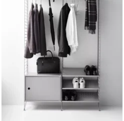 Ce plateau de bureau noir s’adapte aux portants muraux et portants au sol String. N’hésitez plus ! Créez votre propre composition murale.