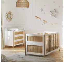 Lit Bébé évolutif Cèdre Et Rotin Océania 70x140cm – Blanc