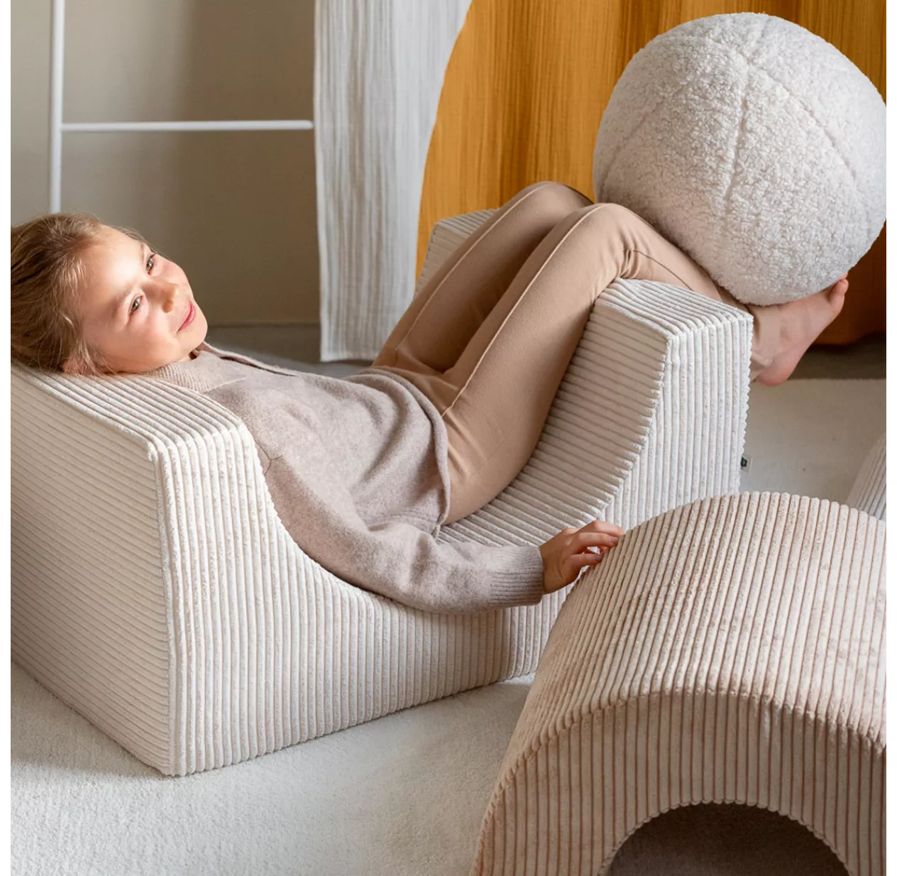 Trio De Poufs Rainbow En Velours Côtelé – Ecru