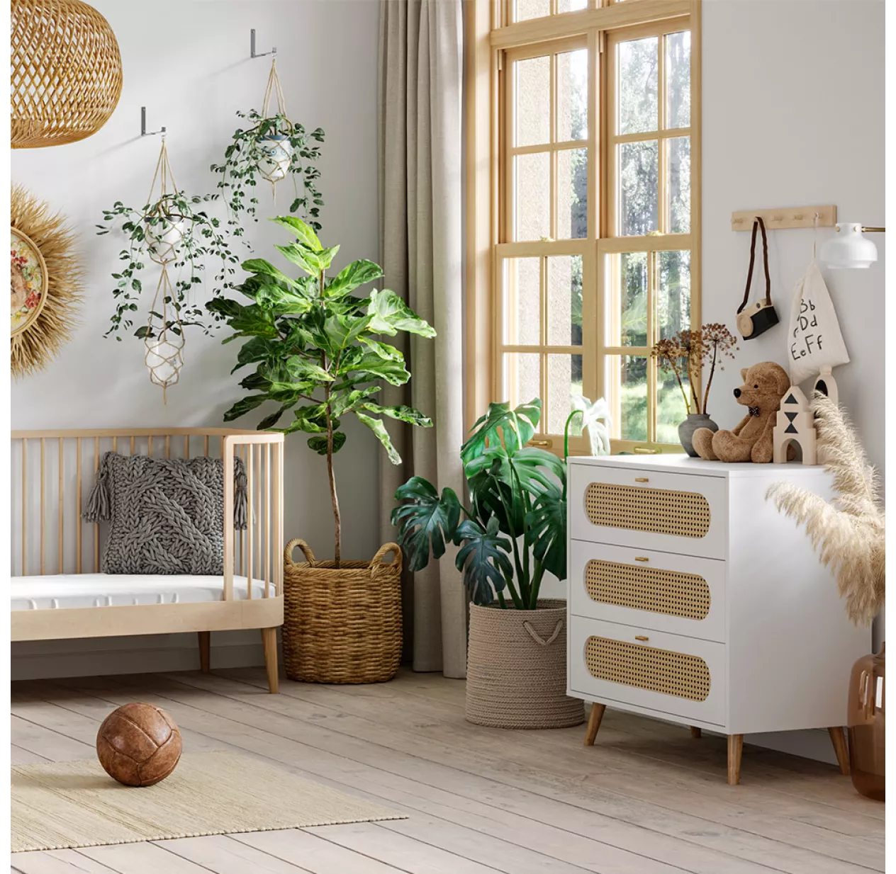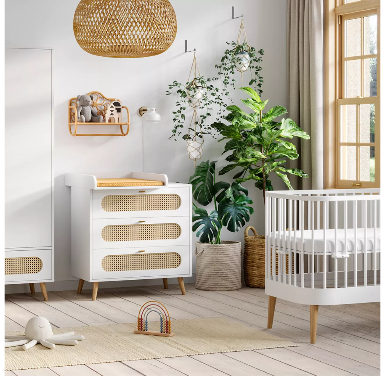 – à noter, que le plan à langer dépasse d’environ 6 cm à l’avant et de 15 cm à l’arrière de la commode,